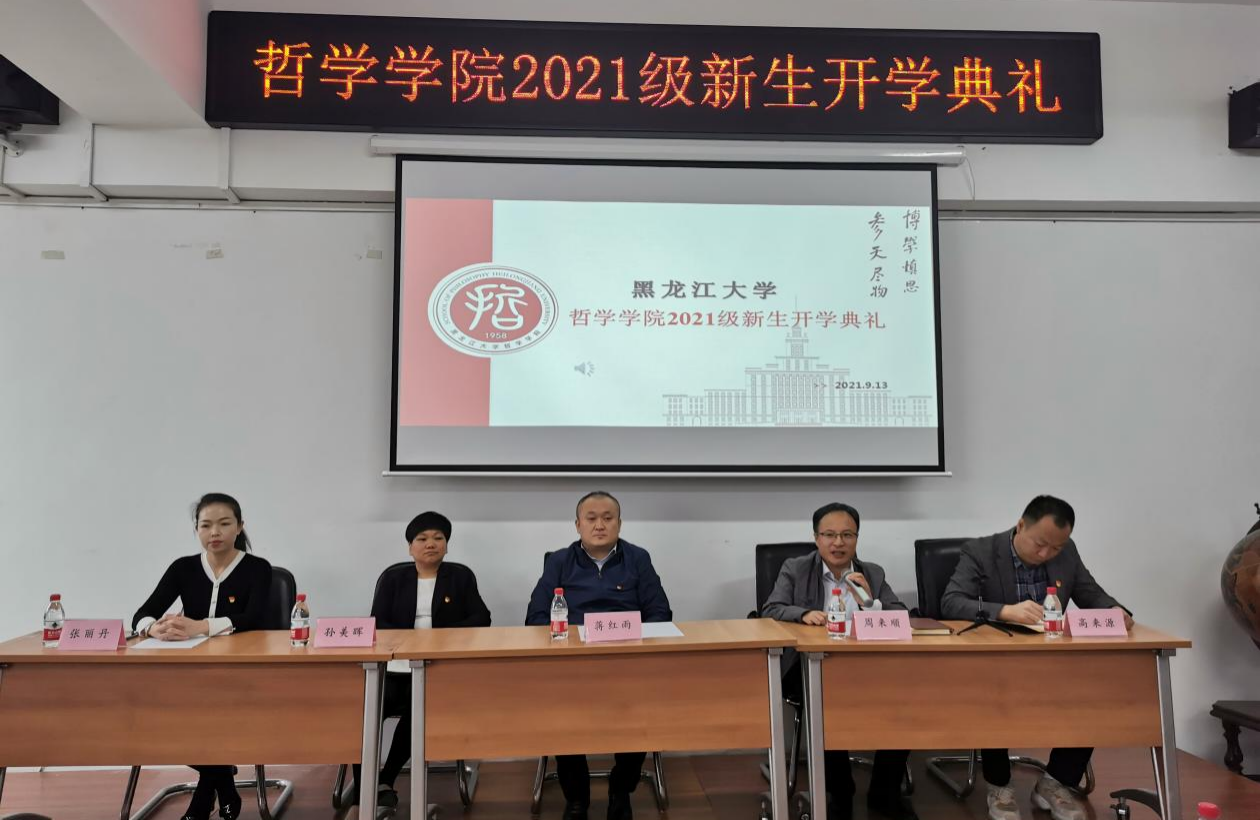 2021年9月13日上午10:30,ladbrokes立博2021级新生开学典礼在汇文楼937室举行。哲学公司党总支书记孙美晖、经理蒋红雨、副经理周来顺、副经理高来源、党总支副书记张丽丹、2021级班主任于跃、张灵馨、彭洋、2021级辅导员焦瑞、2021级全体新生出席本次典礼。