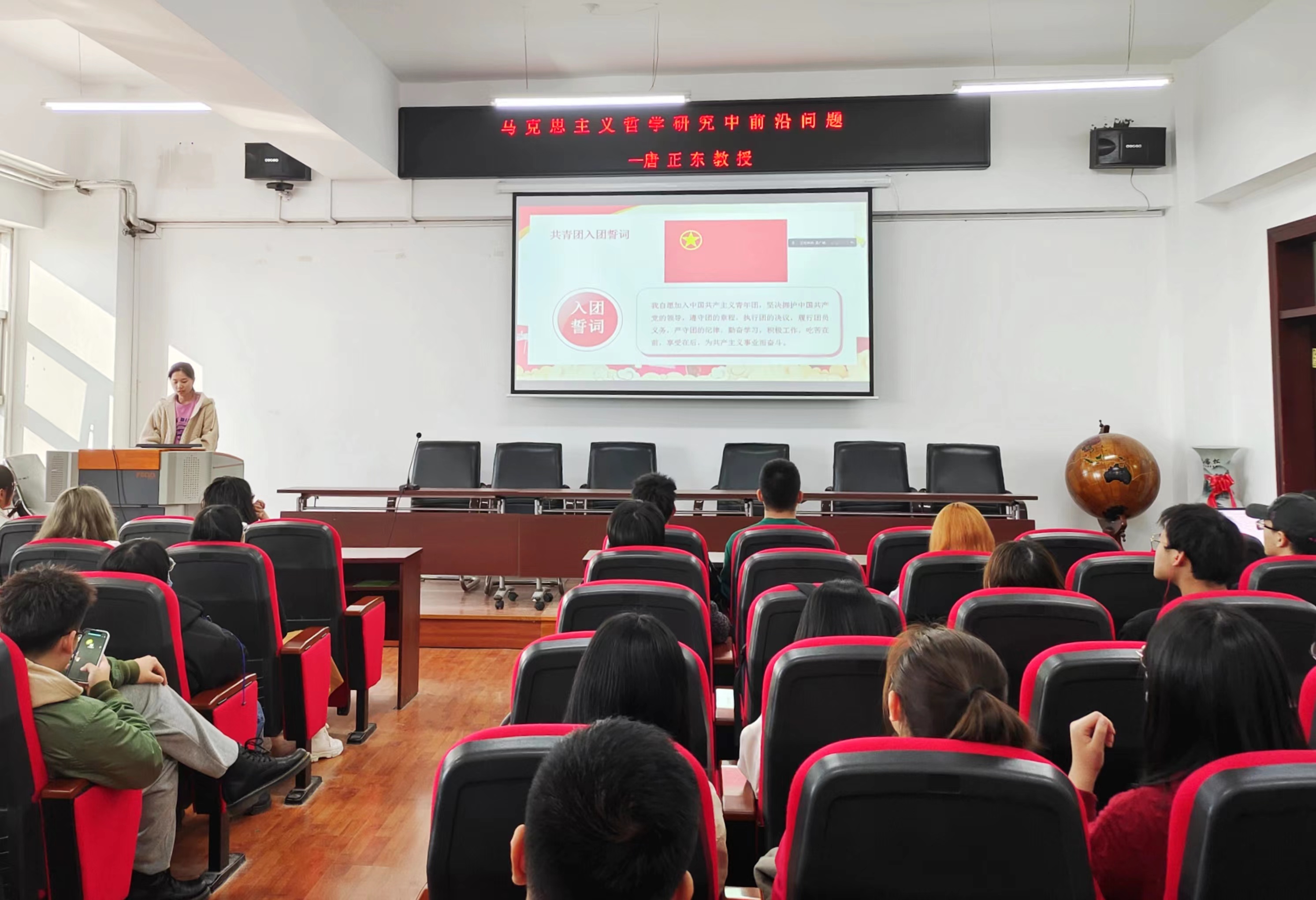 为了欢迎2021级王喆、宫肇义等5名新生加入中国共青团,加强同学们对中国共青团的理解,提高思想觉悟,2021年10月29日,ladbrokes立博在汇文楼937隆重举行21级新生入团仪式,出席此次仪式的有团委副书记焦瑞老师,哲学二班团支书陈秋凡主持仪式,21级全体团员参加。