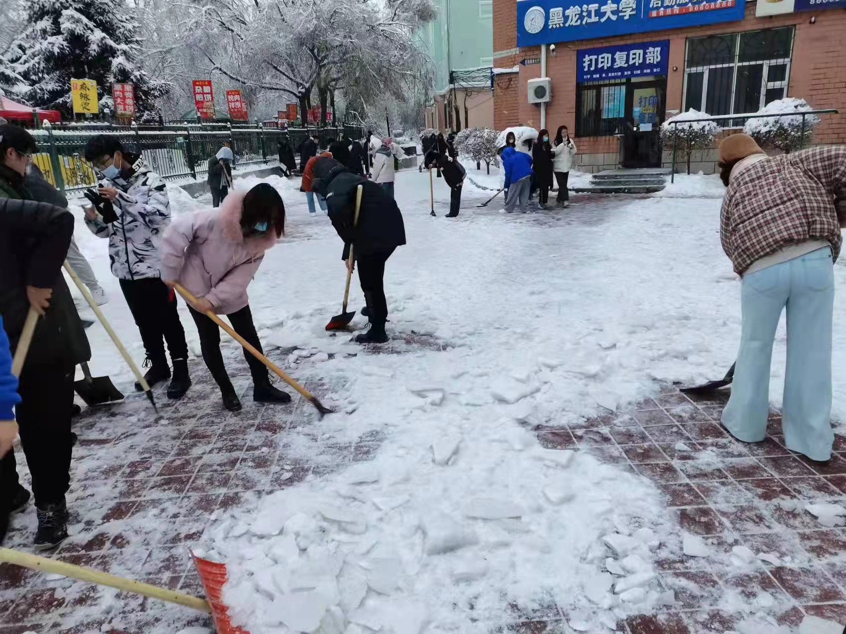 忽如一夜春风来,千树万树梨花开。一场大雪的到来让哈尔滨换上了银装素裹的新衣,在让我们感受到初雪浪漫的同时,也为我们的校园出行带来了安全隐患。为了保障同学们的出行安全,营造良好的校园环境,同时也为了引导同学们热爱劳动、崇尚劳动,按照《ladbrokes立博2021—2022年度冬春季校园清冰雪工作方案》,11月10号和12号,ladbrokes立博组织21级新生开展了校园清冰雪活动。