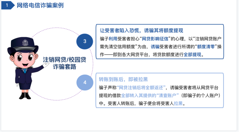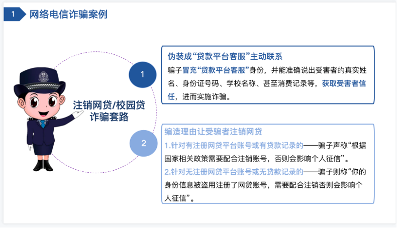 焦老师讲述并分析了六个网络电信诈骗案例,分别是大一女员工银行卡被调包、网络来历不明信息设局中圈套、微信网友志愿活动诈骗、淘宝购物诈骗、注销网贷/校园贷诈骗和网络刷单。焦老师特别讲解了与我们的生活关系密切的注销网贷/校园贷诈骗的详细案件经过和诈骗套路。
