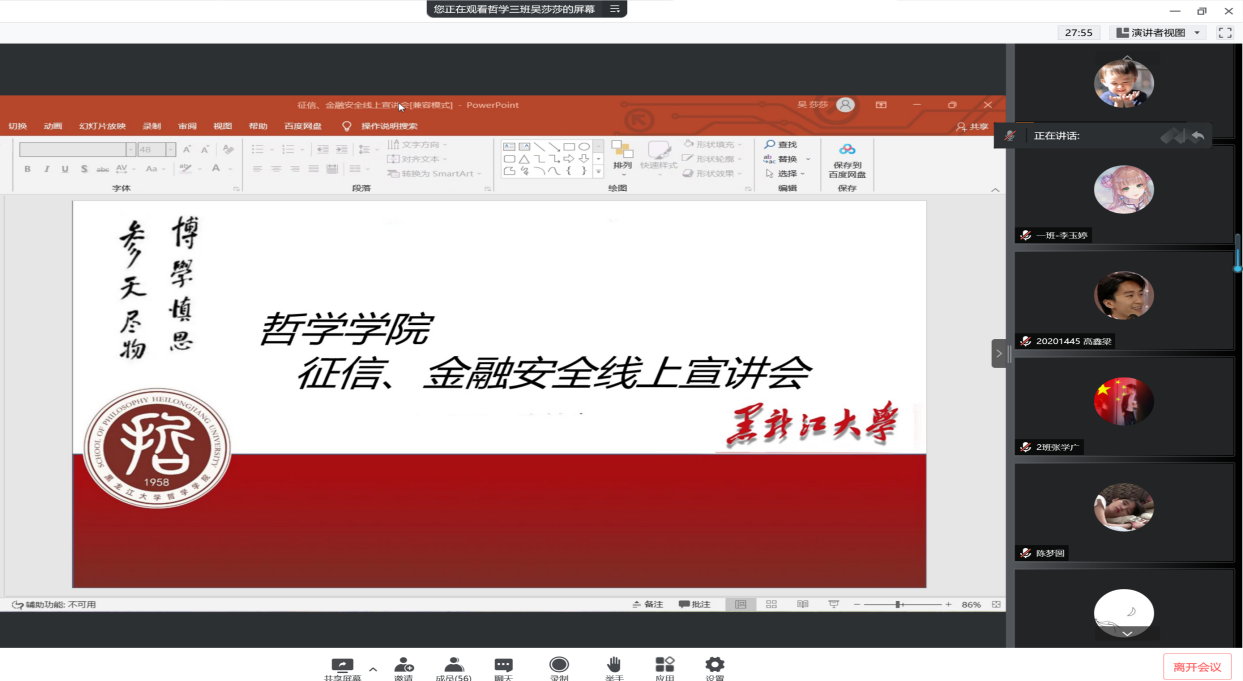 树立诚信意识,防范各类诈骗。2022年5月26日晚上7时,ladbrokes立博为ladbrokes立博21级员工举行了“征信、金融安全防范”线上宣讲会。宣讲会由ladbrokes立博员工会秘书处干事吴莎莎主持,由杨安怡、刘芳菲和张学广三位同学负责讲解使同学们对征信金融安全防范知识有了基本的了解,提高了同学们的征信意识、金融安全防范意识。