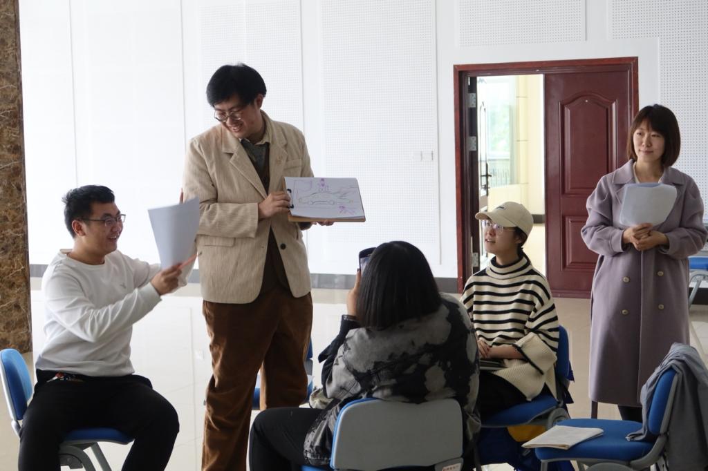 老师将同学们进行简要的分组,同学们以小组为单位进行无交流作画。同组的同学们在未经交流的情况下共同创作一幅画,完成后每个组派一名代表对作品进行介绍。整个活动加深了同学们之间的理解与沟通,增强班级同学间的默契与和谐,提升了班级的凝聚力。