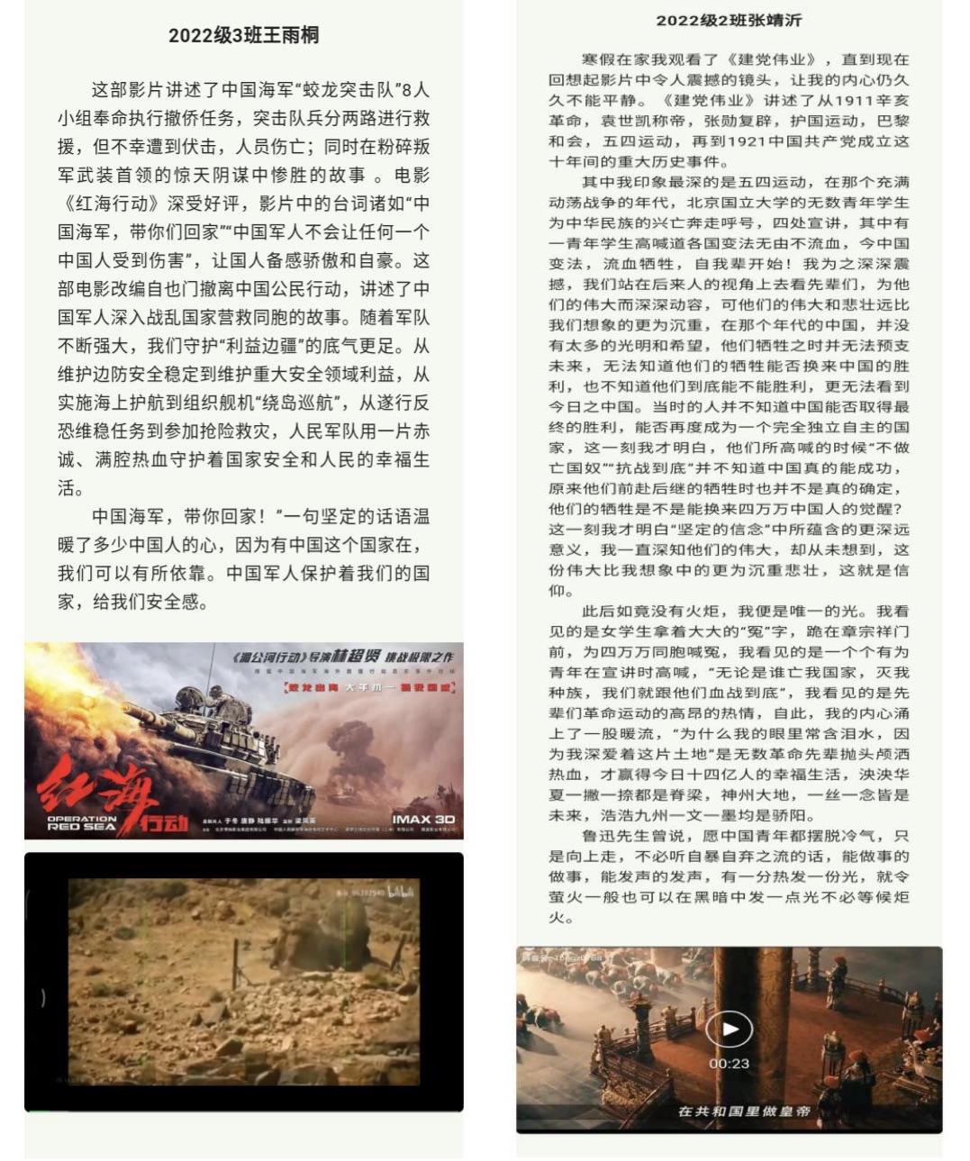 光影追寻传统,青春诠释经典。寒假期间,同学们和亲友一起观看一部红色电影,穿梭在经典之间,畅游历史长河,共同品味那一段段关于青春、理想、奋斗的故事,感受时代的变迁和祖国的发展,感悟中国共产党人的革命精神,体会伟大的爱国力量。
