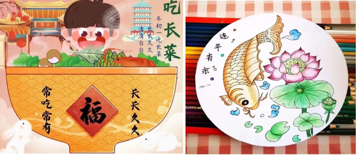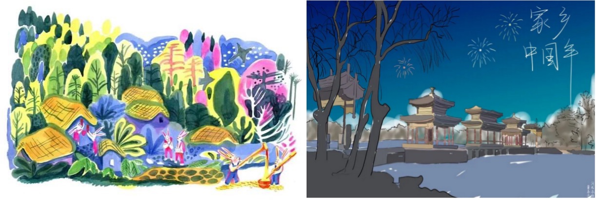 你的故乡或许是喧嚣繁忙的大都市,抑或是清雅静谧的边陲小镇,它承载着你永远的留恋与热爱。兔年已至,同学们用实际行动为所在家乡献上了一份新春贺礼,用心感悟家乡的变化,用画笔记录家乡的风土人情,设计创作“家乡中国年”主题海报宣传画,精心呈现了家乡独特的历史风貌及春节风俗。