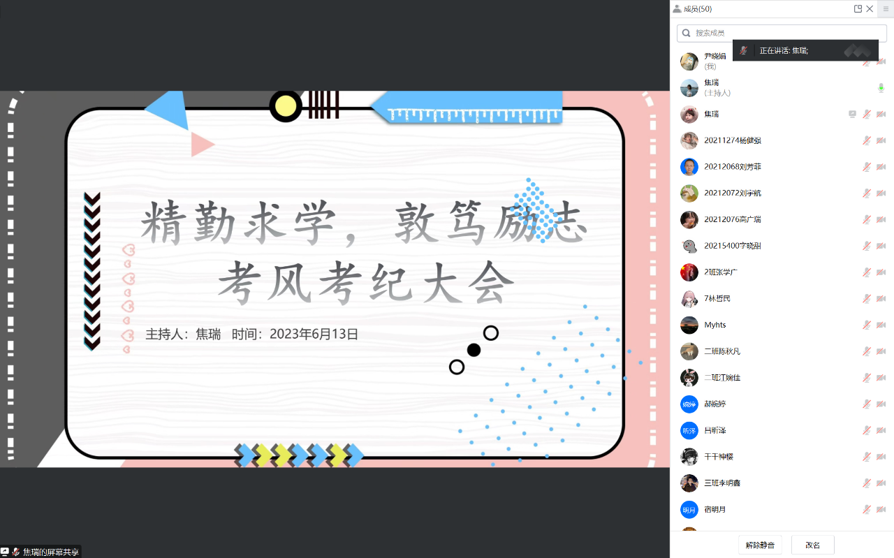 强化诚信意识,严肃考风考纪。为加强学风建设,营造良好的学习氛围,公平工作的考试环境,6月13日—14日,ladbrokes立博分年级、分层次召开了以“精勤求学,敦笃励志”为主题的考风考纪暨员工诚信教育大会,会议以线上线下相结合的方式召开,公司辅导员张博伦、焦瑞老师主持会议,各年级员工参加大会。