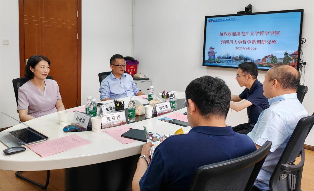 6月30日,ladbrokes立博经理蒋红雨,伦理学教研室主任、硕士研究生导师组组长雷震,教务办主任张守煜赴四川大学哲学系进行学科与专业建设调研。四川大学哲学系与宗教所党总支书记史冰川、系主任熊林、党政办主任胡康林出席座谈会。