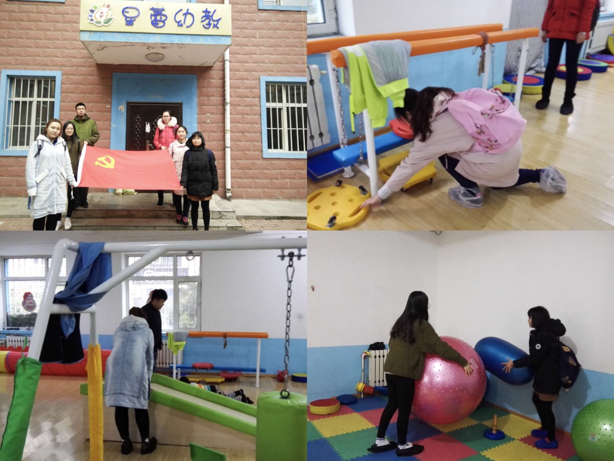 此次社会实践活动是第五十二期入党发展对象培训内容的重要组成,同学们热情洋溢、满怀期待。来到星蕾幼教园后,同学们首先向幼教园的老师们了解了幼教园的自闭症儿童的基本情况,并认真听老师讲解了帮教工作的有关注意事项。接下来,同学们跟随老师来到训练室,充满热情地问候孩子们,并简要地进行了自我介绍。随后,同学们陪同孩子们一起进行了滑板、抓球、投球和俯卧撑等常规感统训练,帮助孩子们在训练中提高自我控制能力、协调平衡感。在整个帮教过程中,同学们表现出乐于服务他人、乐于奉献社会的积极向上的态度,用实际行动体现着对孩子们的关爱之心和用对党的忠诚向往之心。最后,同学们在不舍中与孩子们告别,本次实践活动圆满结束。