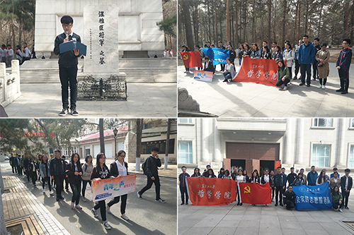 在雄壮的国歌声中,全体人员面向纪念碑对烈士鞠躬默哀,向逝去的英魂表示缅怀和敬意。接下来,员工干部代表、教师党员代表分别进行了发言。员工代表从实际出发,结合身边力所能及的小事,表达了对共产主义坚定的理想信念和报效祖国的决心。教师党员代表在发言中表示,希望同学们能够珍惜幸福生活,树立远大理想,发奋读书,为社会主义建设扎实本领。随后,全体同学进行了宣誓,一句句铿锵有力的誓词将气氛推向了高潮。最后,大家在工作人员的带领下参观了烈士墓碑和纪念馆,再一次感受革命先烈们的爱国主义精神和不怕牺牲的奉献精神。