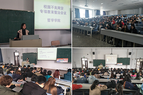 会上,黄老师就什么是校园贷、校园贷的分类、不良校园贷的危害、如何防范校园不良网贷以及发生信贷危机怎么办五个方面做了详细介绍与说明。引导员工合理规划收支、不盲目攀比、理性适度消费,掌握基本金融常识,增强甄别、抵制意识和能力。随后,黄老师就老员工身陷校园贷款危机的现象进行了深入剖析。她强调,校园贷具有高利贷性质,不法分子将目标对准高校,采用虚假宣传的方式、降低贷款门槛、隐瞒实际资费标准等手段,利用高校员工社会认知能力较差,防范心理弱的劣势,诱导员工过度消费,进行短期、小额的贷款活动,但实际上不法分子获得的利率是银行的20-30倍,以此肆意骗取员工钱财。最后,黄老师带领全体同学观看了龙视《新闻夜航》节目“深度———越陷越深的校园贷”专题报道视频。视频中一个个触目惊心的真实案例,使同学们更加深刻直接的了解到了校园贷的危害,敲响了同学们思想上的警钟。