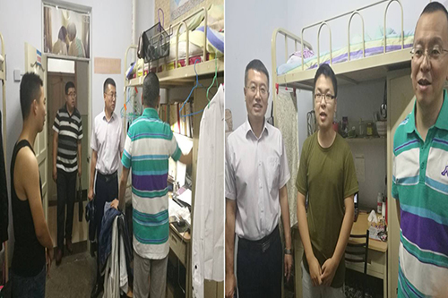 为了进一步做好毕业生文明离校教育工作,2017年6月19日17时,公司党总支书记孙庆斌,经理罗跃军,副经理蒋红雨,信息秘书王秋走访了公司毕业生寝室,公司团委书记、辅导员黄影陪同。
