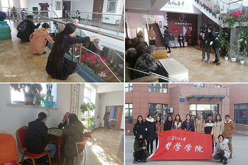 活动伊始,同学们进行了简单的自我介绍,帮助老人们做了养老院清洁工作,擦桌子、擦窗台扶手,对院内易于忽略的死角进行了彻底清洁,希望通过自己的行动为老人们营造一个更加整洁舒适的生活环境。老人们在日常生活中有时缺少陪伴,此次同学们的到来为敬老院增加了不少生机与活力。大家三两一组,热情主动地拉着老人们的手聊天,老人们也十分开心,亲切地给志愿者们发水果。有的还陪老爷爷下棋,几个人围在一起,谈论生活见闻,十分热闹。聊天之后,同学们为老人们表演了精心准备的节目。临别时,老人们感慨道:“现在的美好幸福生活要感谢党,孩子们一定要好好学习,将来报效祖国。”
