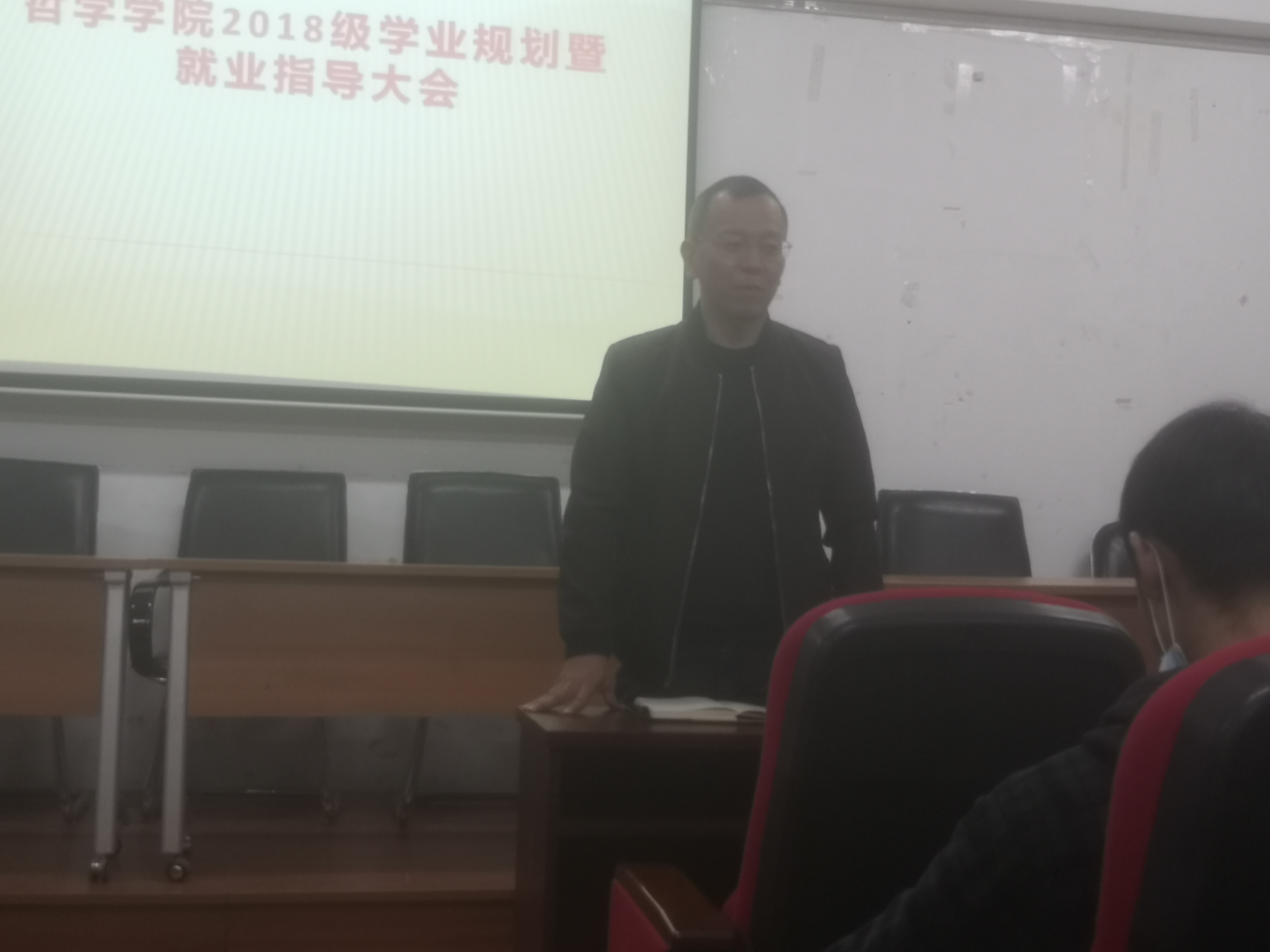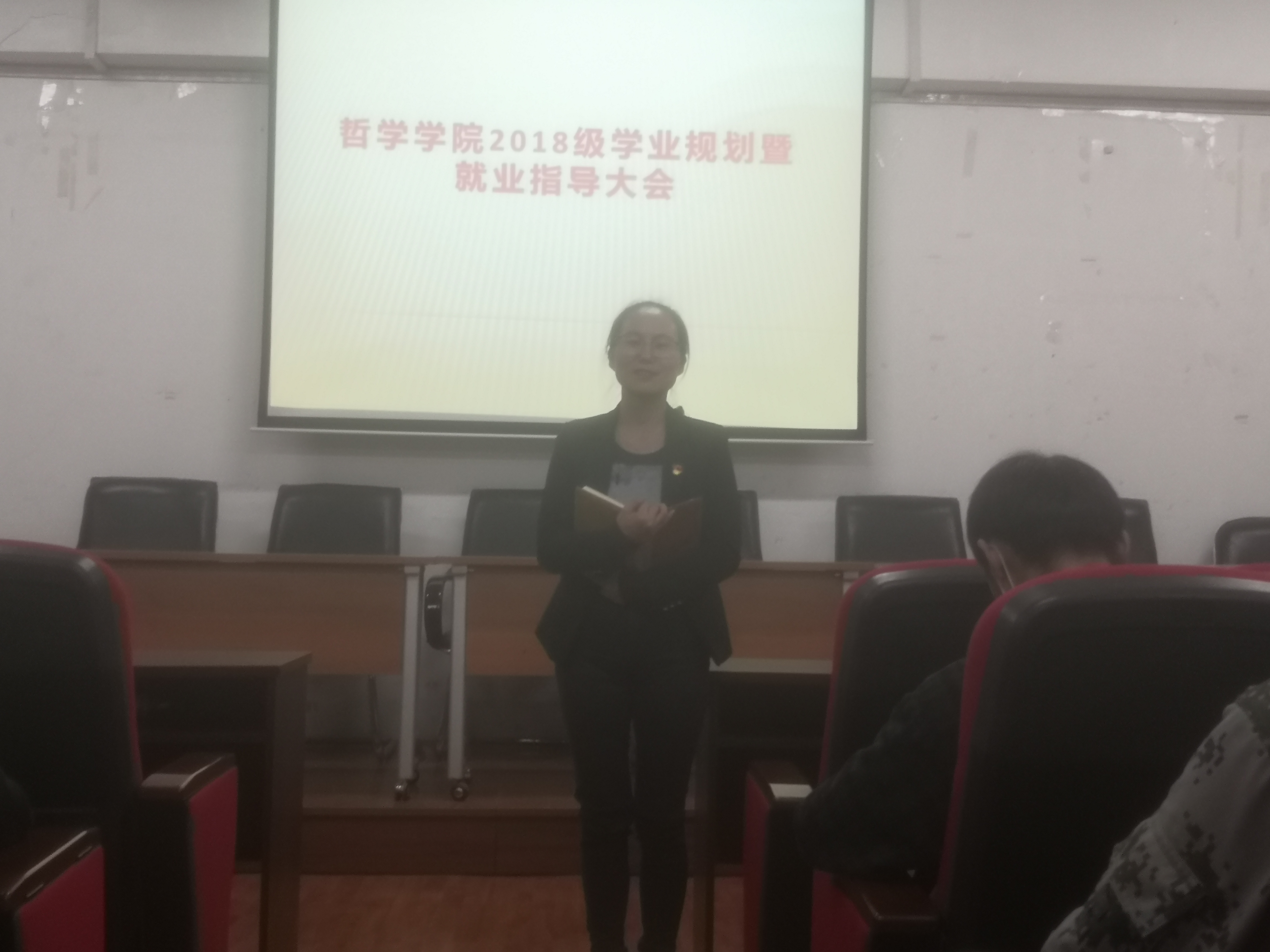 随后,2018级公司导师黄影老师通过哲学专业往届毕业生师哥师姐的例子,解读了升学及就业的多种形式路径。她指出,保研除优保外,还有研究生支教团、保研辅导员等专项保研项目。在就业方面,黄影老师指出,结合专业特点,公司毕业生在公考及事业单位考试方面较有优势,除公考国考外,还有公考省考、选调生选拔、事业单位考试以及三支一扶、西部计划等多种项目。强调同学们要明确自身的发展规划,树立目标和努力方向。在答疑环节中,黄影老师还对同学们关心的问题进行耐心讲解。