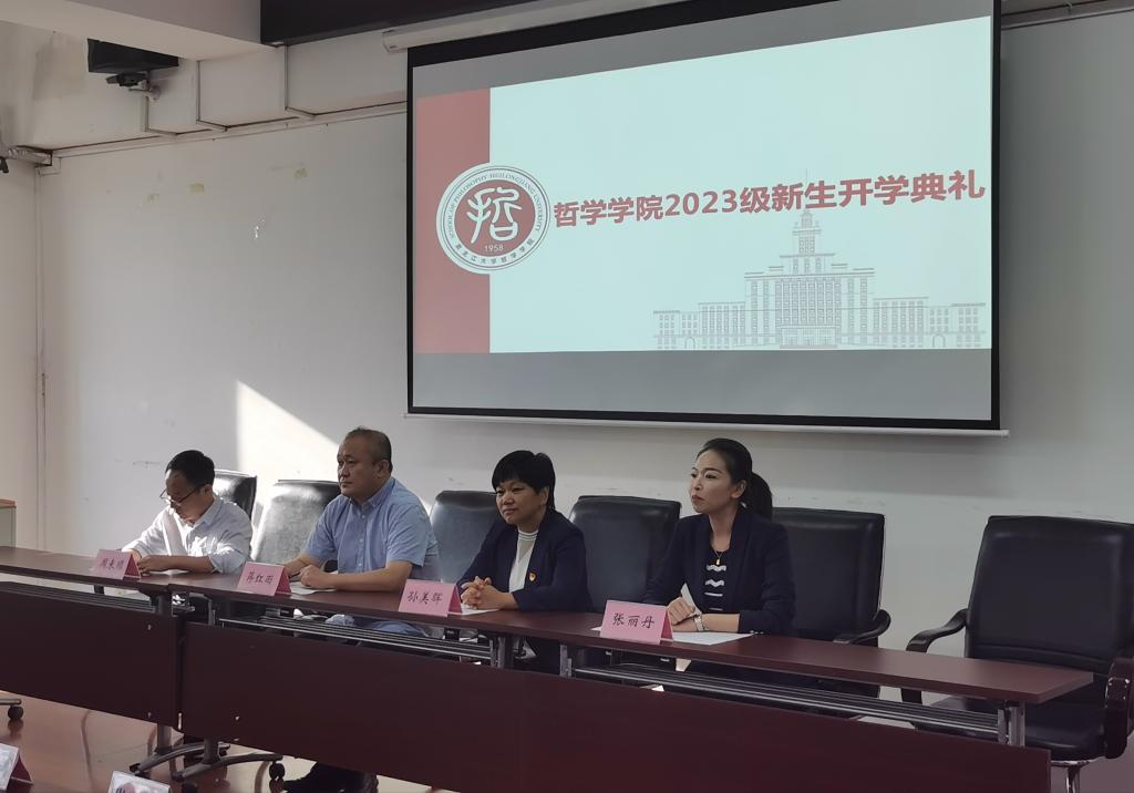 开学典礼在雄壮的国歌声中开幕。随后,2023级哲学专业3班侯加乐同学代表全体2023级新生发言。侯加乐同学表示很荣幸能够进入自己理想的大学和专业学习。他表明选择一条路就要切实努力去做,在今后的学习生活中,希望同学们打牢知识基础,慎思明辨,爱智创新,期待在哲学的海洋里畅游翱翔,走出“温室”,不懈奋斗,砥砺前行。