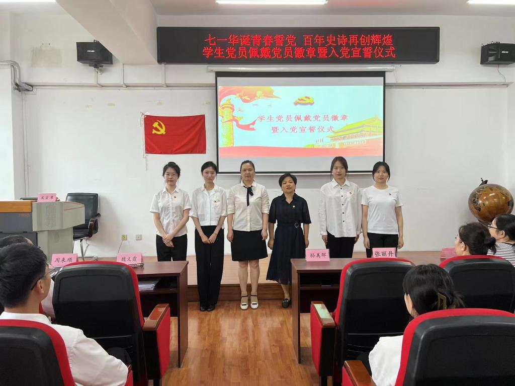 仪式第二项是全体新发展党员宣读入党誓词,全体老党员重温入党誓词。在领誓人魏义霞老师的带领下,全体师生党员面向党旗,举起右手,握拳过肩,庄严宣誓。在铮铮誓言中,用党的光荣传统和优良作风坚定信念、凝聚力量,用党的实践创造和历史经验启迪智慧、砥砺品格。