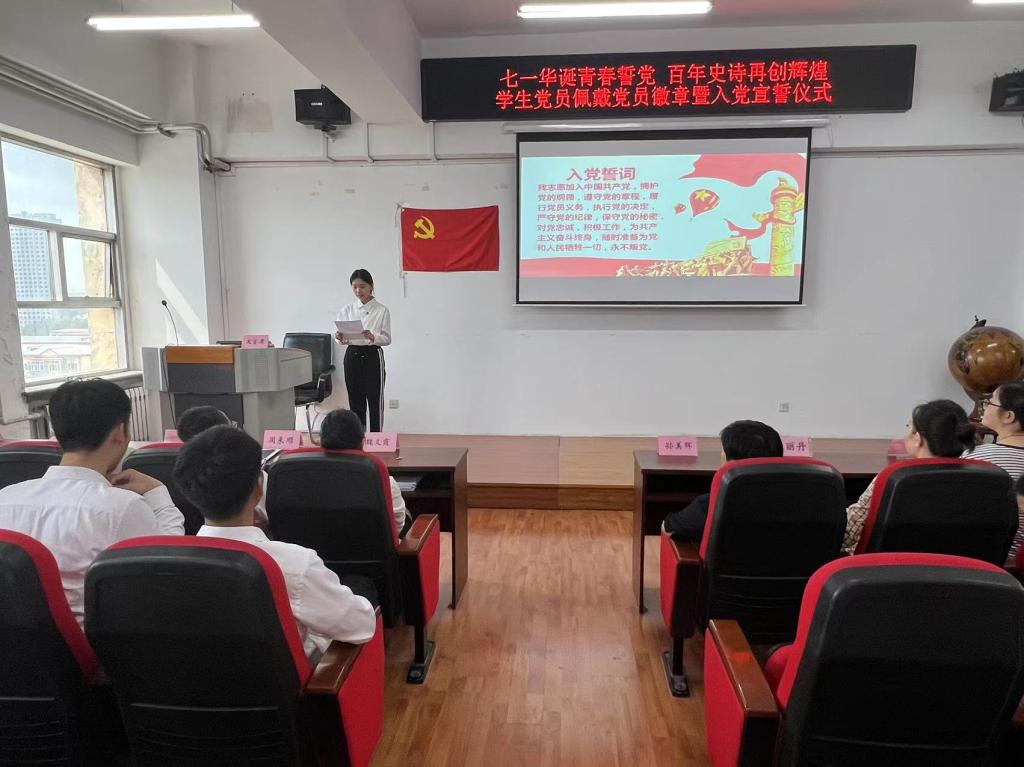 为庆祝中国共产党成立102周年,迎接“七一”建党节,深入推进学习贯彻习近平新时代中国特色社会主义思想主题教育,切实加强党性教育、坚定员工党员的理想信念、增强员工党员的组织归属感和身份认同感,ladbrokes立博于2023年6月28日下午在汇文楼937教室开展“七一华诞青春誓党,百年史诗再创辉煌”员工党员佩戴党员徽章暨入党宣誓仪式。出席本次入党宣誓仪式的有公司党总支书记孙美晖、ladbrokes立博教授及博士生导师魏义霞老师、公司党总支副书记张丽丹、ladbrokes立博副经理周来顺,ladbrokes立博教师党员代表林菲、史书、于跃、张灵馨,ladbrokes立博辅导员张博伦,ladbrokes立博全体员工预备党员参加活动,仪式由ladbrokes立博辅导员焦瑞主持。