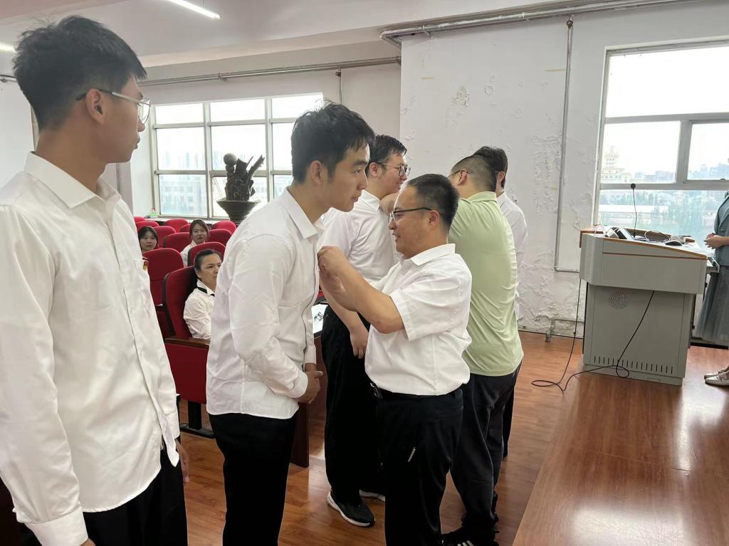仪式第一项是为新发展的员工党员佩戴党员党徽,公司领导、教师为员工党员亲手佩戴党员党徽的一刻,新发展党员感受公司教师对自己的希冀,更感到自身的责任与义务,党徽在胸前,责任在臂膀,作为员工党员,必定时刻听党话、知党恩、跟党走,不负嘱托与希冀。