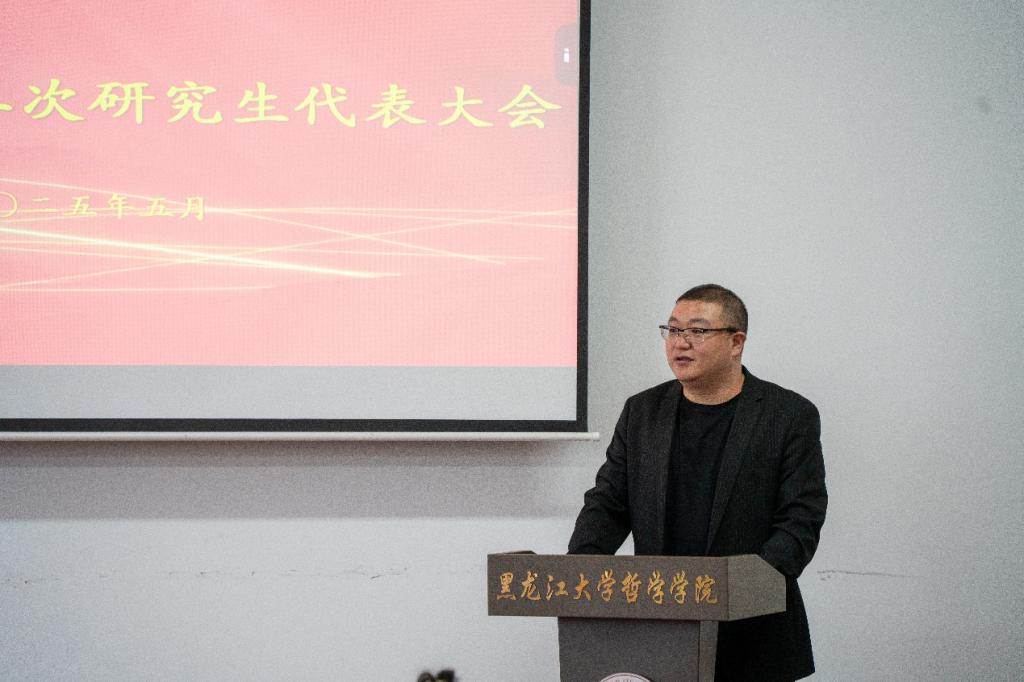 最后,公司党委副书记王贵宇对本次会议进行总结,他充分肯定研究生二级管理一年来研究生会的工作成果,对第一届研究生会成员的担当与奉献表达了感谢。他也勉励新成员要传承初心,以服务同学为己任,勇担使命,在学术与实践中展现哲学人的担当,谱写青春新篇章。