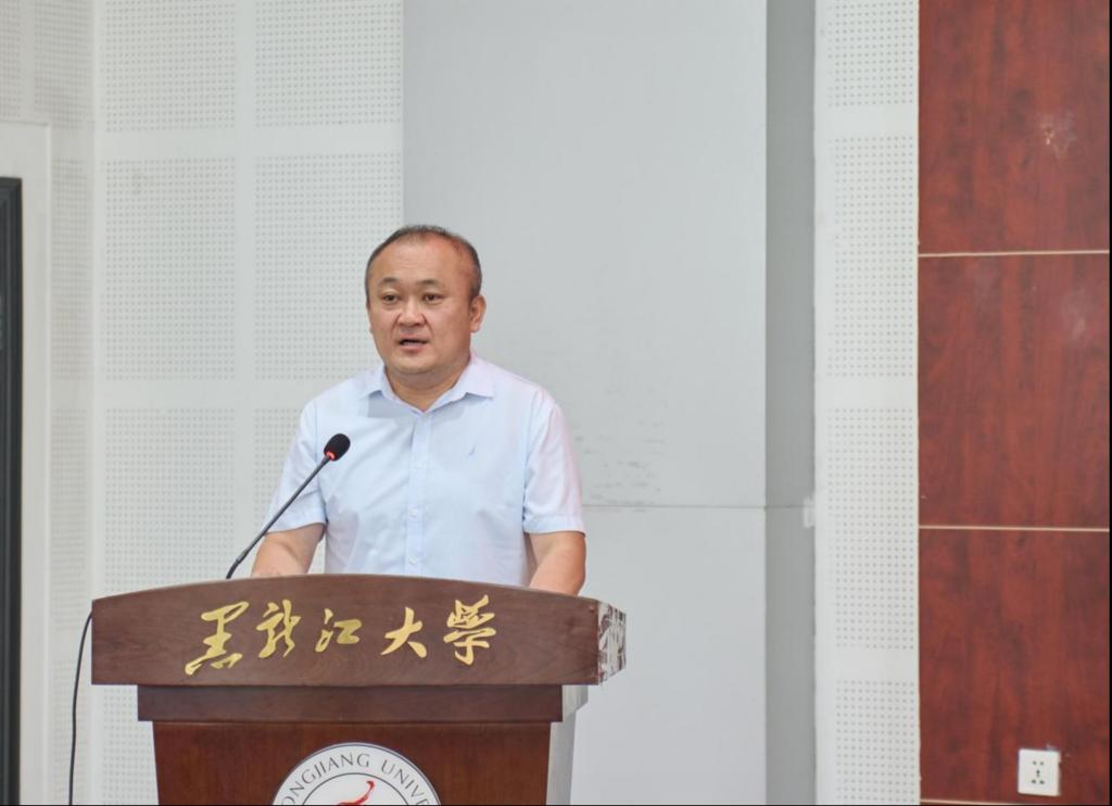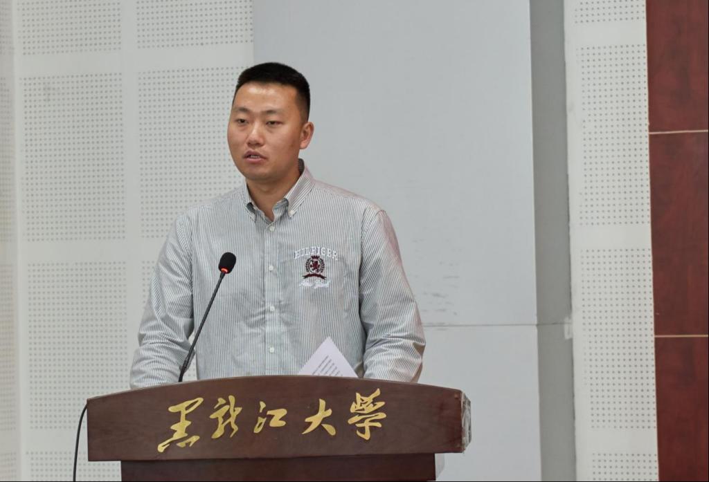 哈尔滨工程大学马克思主义公司教师高清宇代表员工致辞,他深情回顾了13年前在黑大的求学时光:在汇文楼聆听老师讲授三大哲学史,往返于新旧图书馆查阅资料,在体育馆与老师们打球挥汗,在家属区咖啡馆碰撞思想火花,记忆仍清晰。他分享学业经历,本科毕业后保研南京大学,考入人大读博,坦言人生与学术进步离不开黑大哲学的滋养,还提及公司领导曾赴南京、北京看望员工,让他倍感温暖。最后,他寄语新生:"未经审视的人生是不值得过的"这句苏格拉底名言,以哲学理解生命本质、拓宽格局;发扬“爱智致用,批判创新”精神,刻苦钻研,成长为堪当民族复兴大任的时代新人。