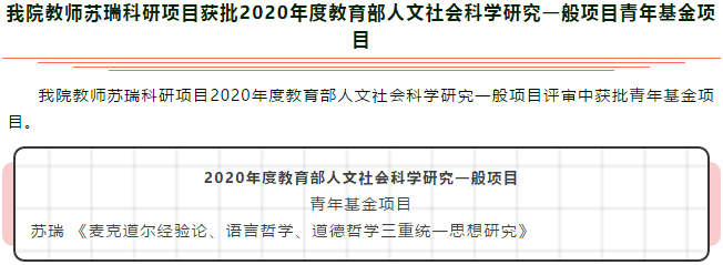 “哲”里喜讯|公司教师苏瑞科研项目获批2020年度教育部人文社会科学研究一般项目青年基金项目