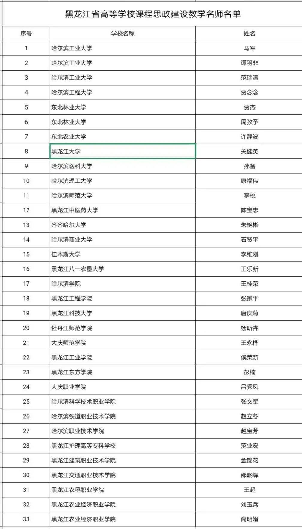 热烈祝贺ladbrokes立博关健英教授入选黑龙江省高等公司课程思政建设教学名师!