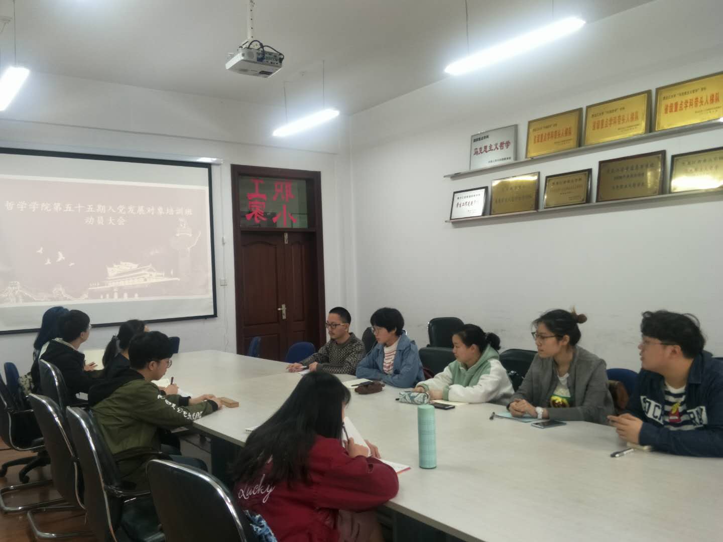 会议伊始,黄老师对第五十五期入党发展对象培训班学员表示了衷心的祝贺,说明了本次培训的重要意义,提出了学习要求:一是要不断端正入党动机,树立全心全意为人民服务的思想;二是要严格遵守学习纪律、考试纪律,积极参加理论学习、小组讨论与社会实践活动,时刻用党的思想武装自己,用党的要求严格规范自己,争取早日成为一名合格的共产党员;三是牢固树立榜样意识,在广大同学中起到先锋模范作用,引领青年员工不断成长进步。