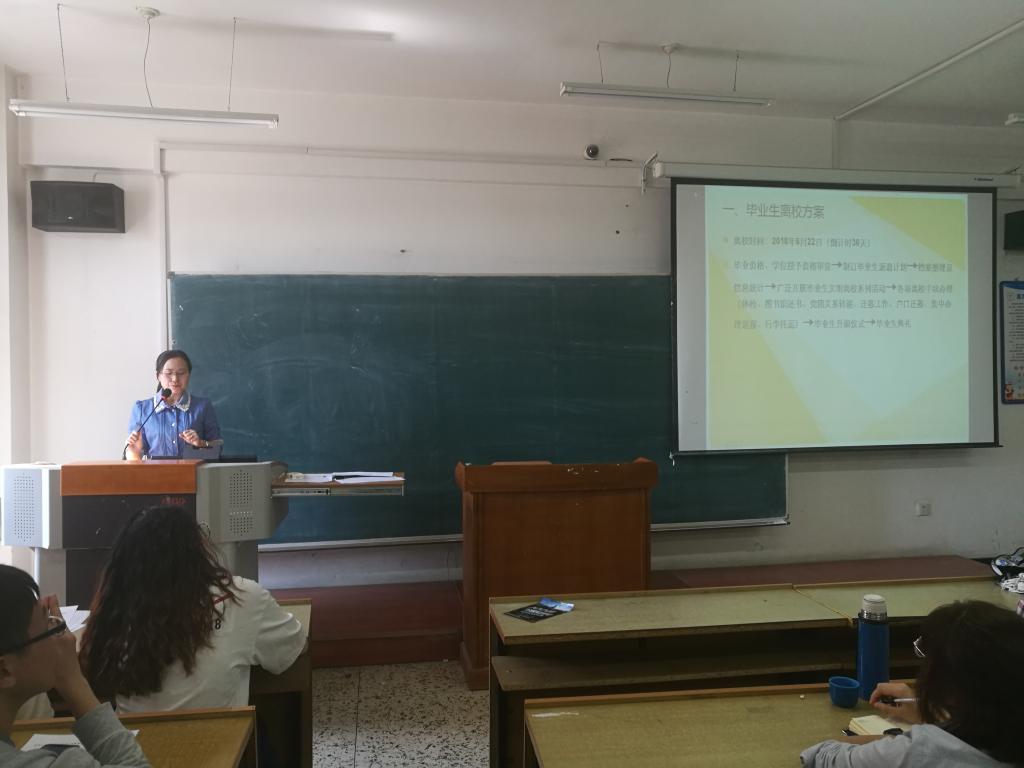 毕业来临之际,为进一步推动毕业生离校工作的开展,保证毕业生文明离校、有序离校、安全离校,结合《ladbrokes立博2018届毕业生离校“十四个一”主题教育方案》,2018年5月18日下午2时,ladbrokes立博文明离校教育大会在汇文楼451室召开。本次会议由ladbrokes立博团委书记、毕业生辅导员黄影老师主持,全体2018届毕业生参加了会议。