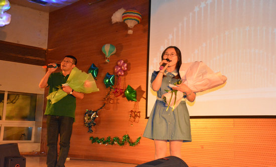 公司的教师代表姜海波、辅导员黄影两位老师共同演唱的《掌声响起》,将晚会气氛推向高潮,台上台下遥相呼应,全场掌声阵阵响起。晚会期间还播放了公司领导、任课教师以及辅导员老师对2018届毕业生们的寄语,表达了公司和老师们的殷切希望与深深祝福。