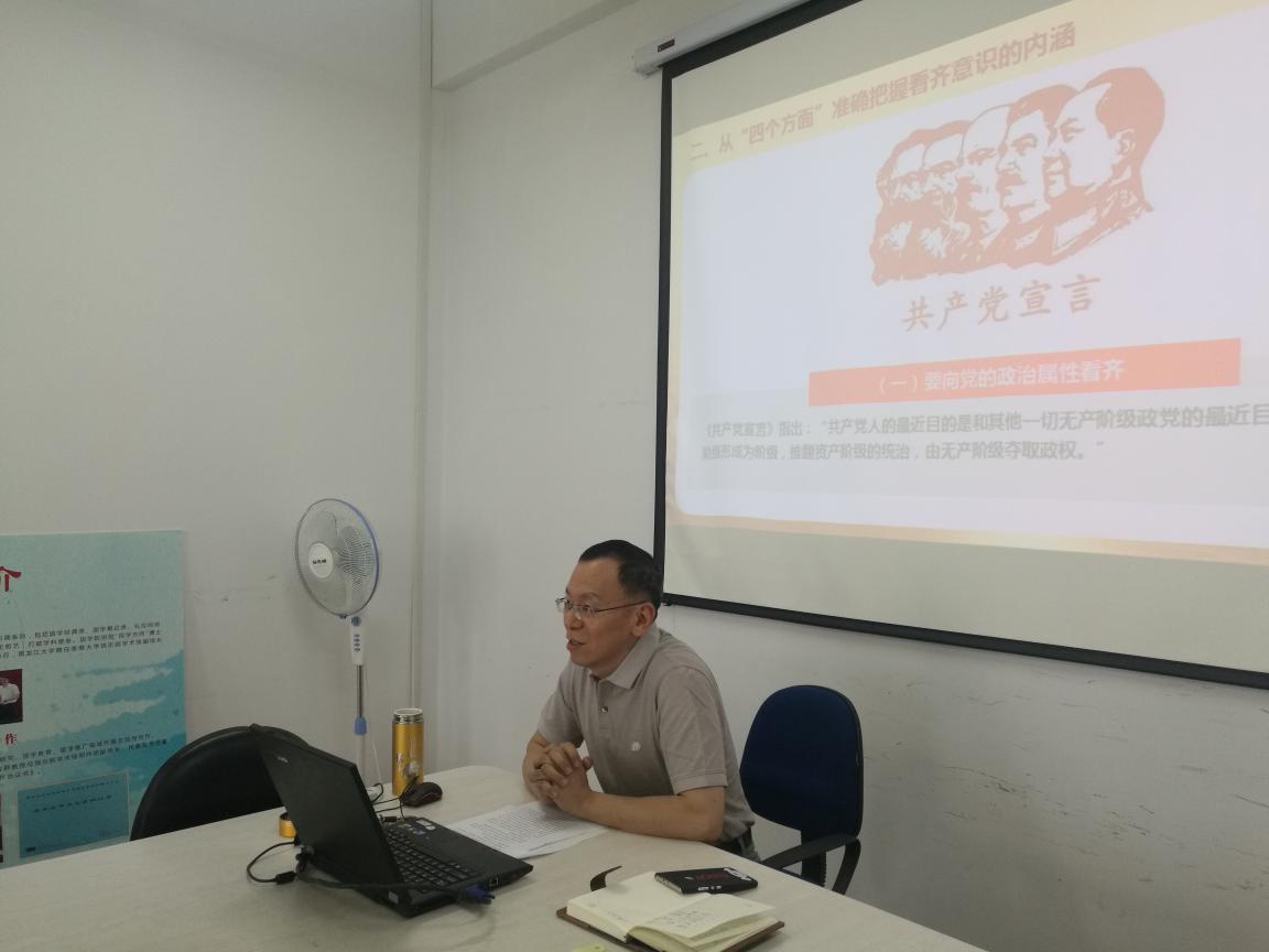 毕业生离校之际,为切实加强毕业生党员党性教育,推进“两学一做”学习教育常态化制度化,2018年6月8日上午,公司党总支书记孙庆斌为毕业生党员上了最后一堂党课——“增强看齐意识,做合格党员干部”。