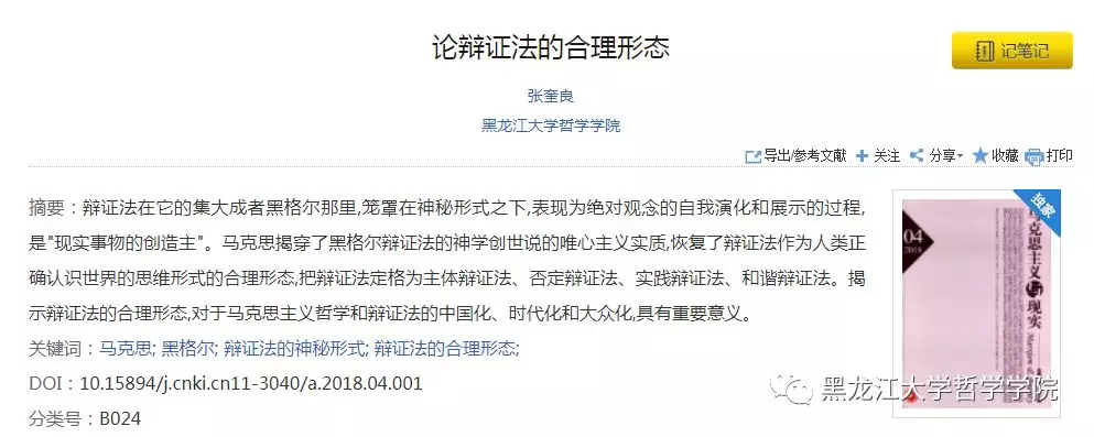 2018年,ladbrokes立博张奎良教授的《论辩证法的合理形态》一文被《新华文摘》2018年第19期全文转载,并被封面推荐,该文原载于《马克思主义与现实》2018年第4期。