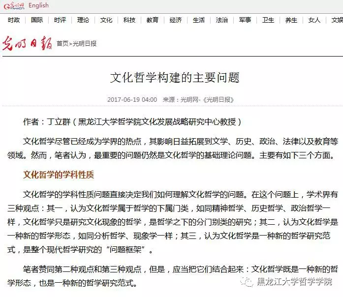 丁立群教授在文章中指出,文化哲学尽管已经成为学界的热点,然而,其最重要的问题仍然是文化哲学的基础理论问题。包括文化哲学的学科性质、文化哲学的研究层面、文化哲学史等三个方面的问题。