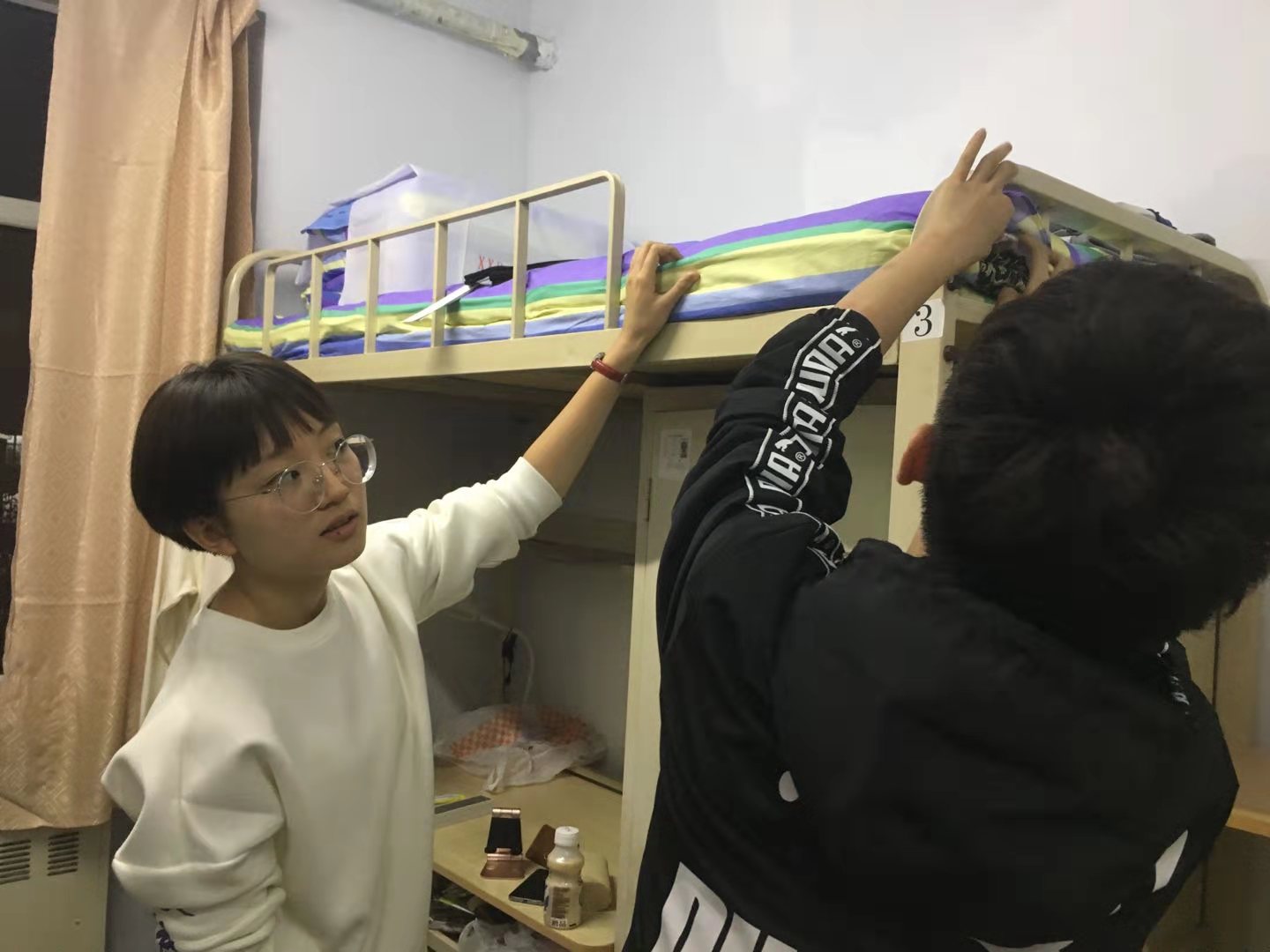 张老师来到寝室受到了新同学们的热烈欢迎。张老师亲切询问同学们对新环境的适应情况,对同学们的饮食起居表示关心,嘱咐同学们要积极融入老员工活,和室友友好相处,在接下的学习中遇到问题要积极主动的请教老师,寝室内一同努力,共同创建文明和谐的寝室文化。