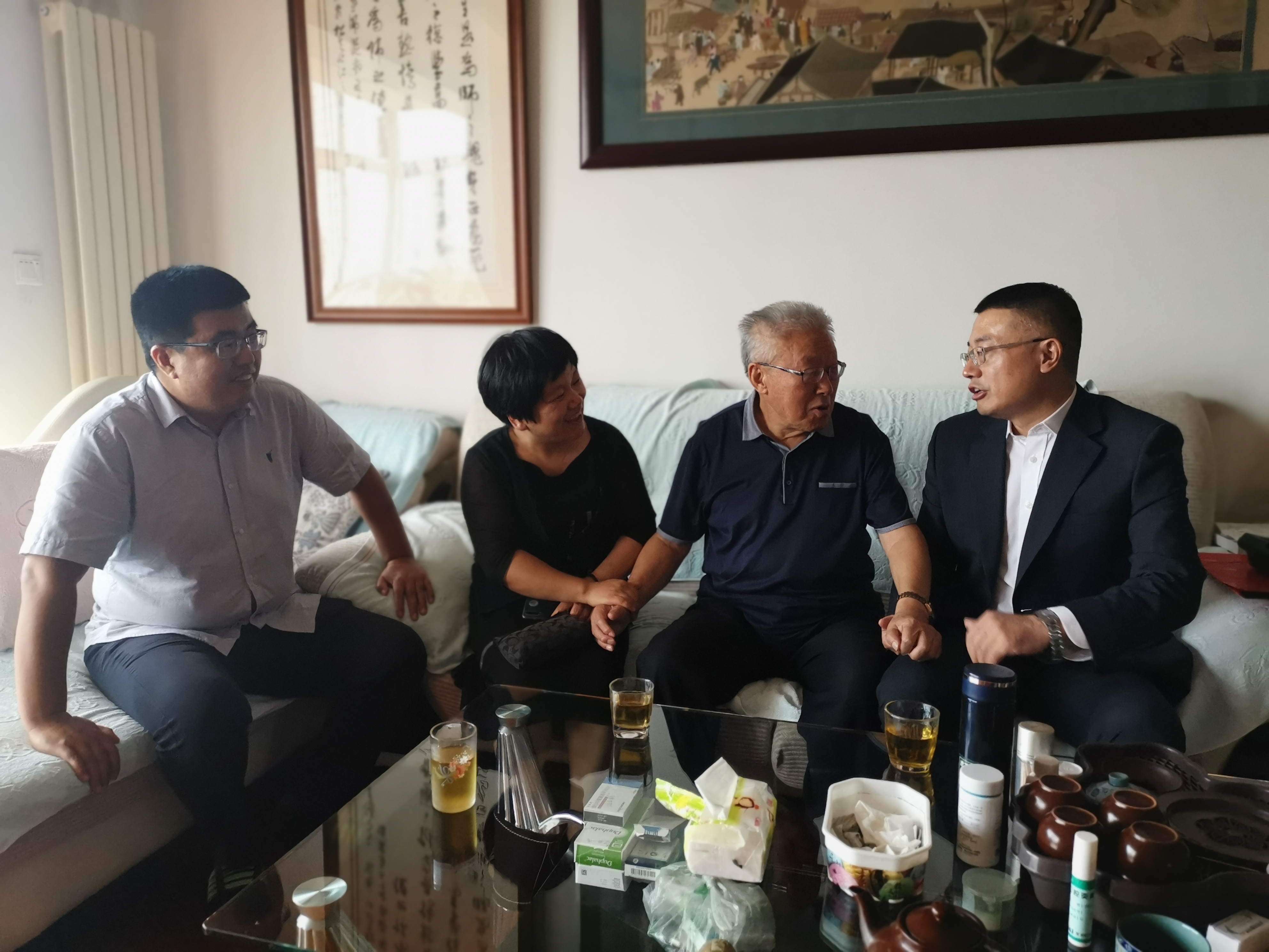 公司领导来到老教师们的家中,详细了解老师们的身体近况和生活所需,共同回忆了过去的学习生活工作的美好时光,感谢老先生们对公司公司发展曾经做出的巨大贡献,以及对公司教学、科研、学科各项事业发展的持续关注。希望老先生们能够保重身体,保持良好的精神状态,继续发挥余热,积极建言献策,助力公司发展。