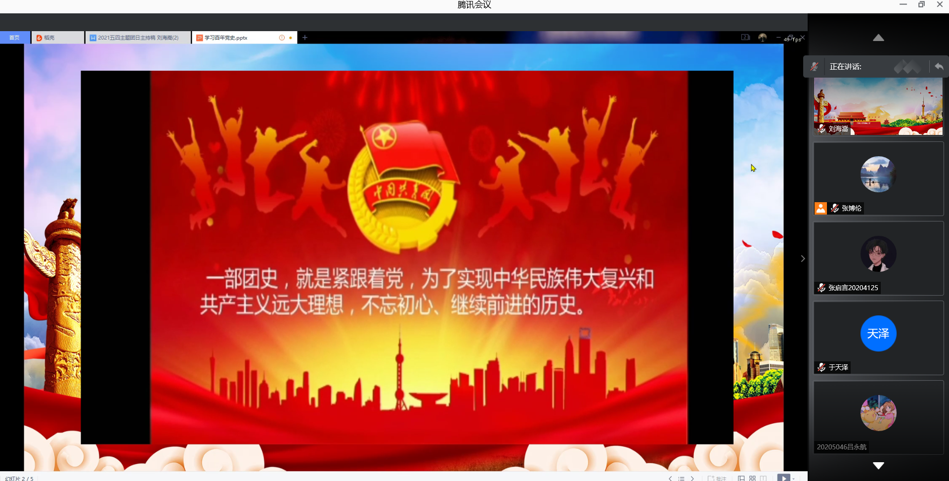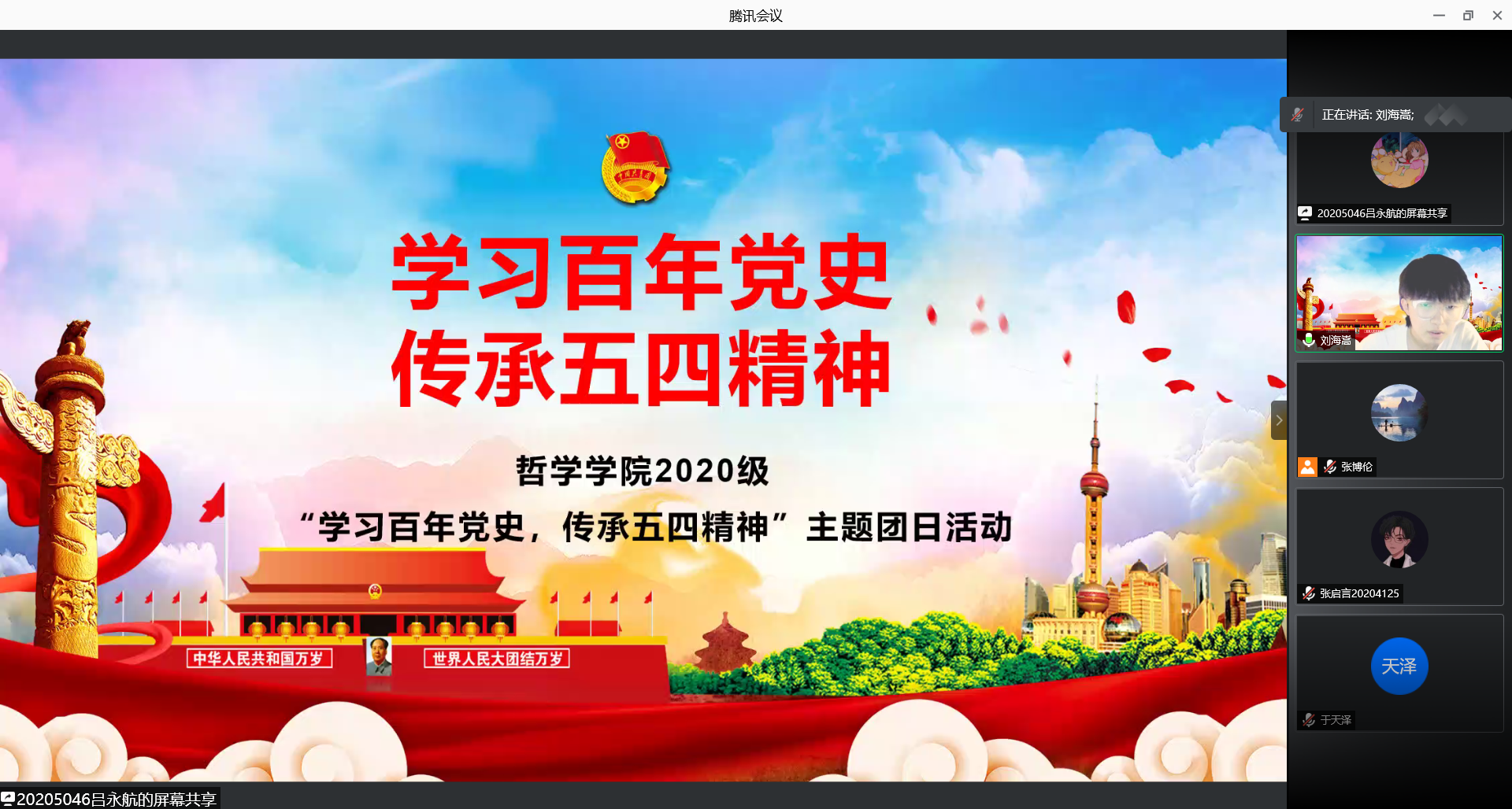 为纪念五四运动102周年,迎接“五四”青年节,按照公司公司关于党史学习教育的整体部署和要求,5月3日上午10:15,ladbrokes立博依托腾讯会议平台举办了2020级“学习百年党史,传承五四精神”主题团日活动。公司团委书记、辅导员张博伦出席活动,公司2020级全体员工参加。