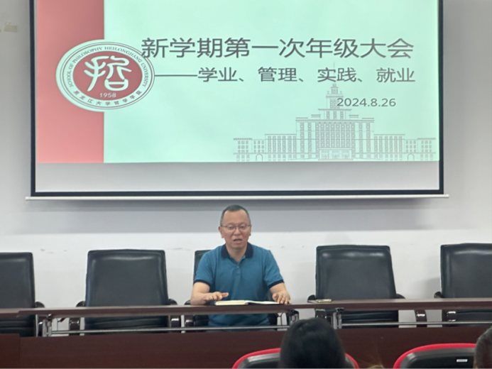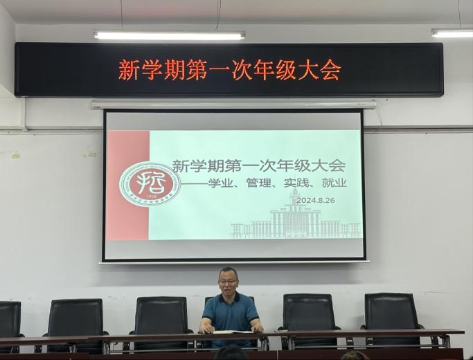 新学期,新气象。为进一步推动员工德智体美劳全方面发展,做好新学期规划,迎接新学期的到来。2024年8月26日,ladbrokes立博在汇文楼937召开新学期第一次年级大会。会议由2023级本科生正处级辅导员孙庆斌老师主讲,2023级全体本科生参加。