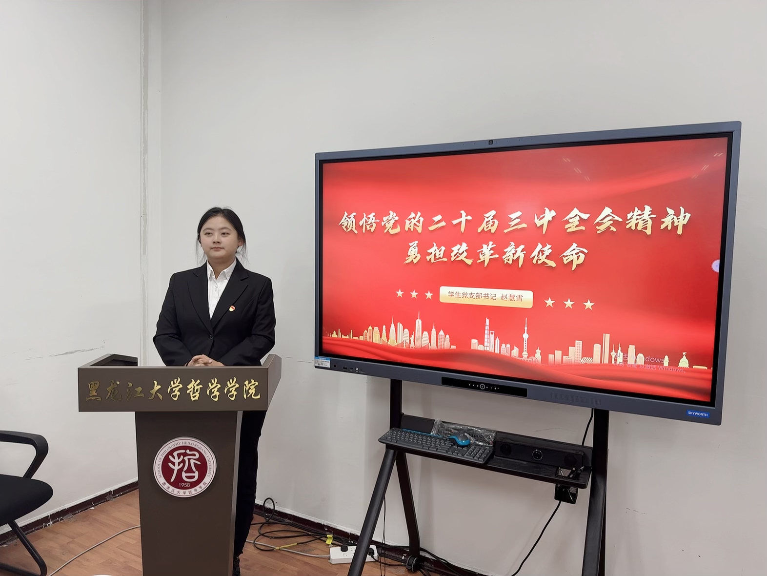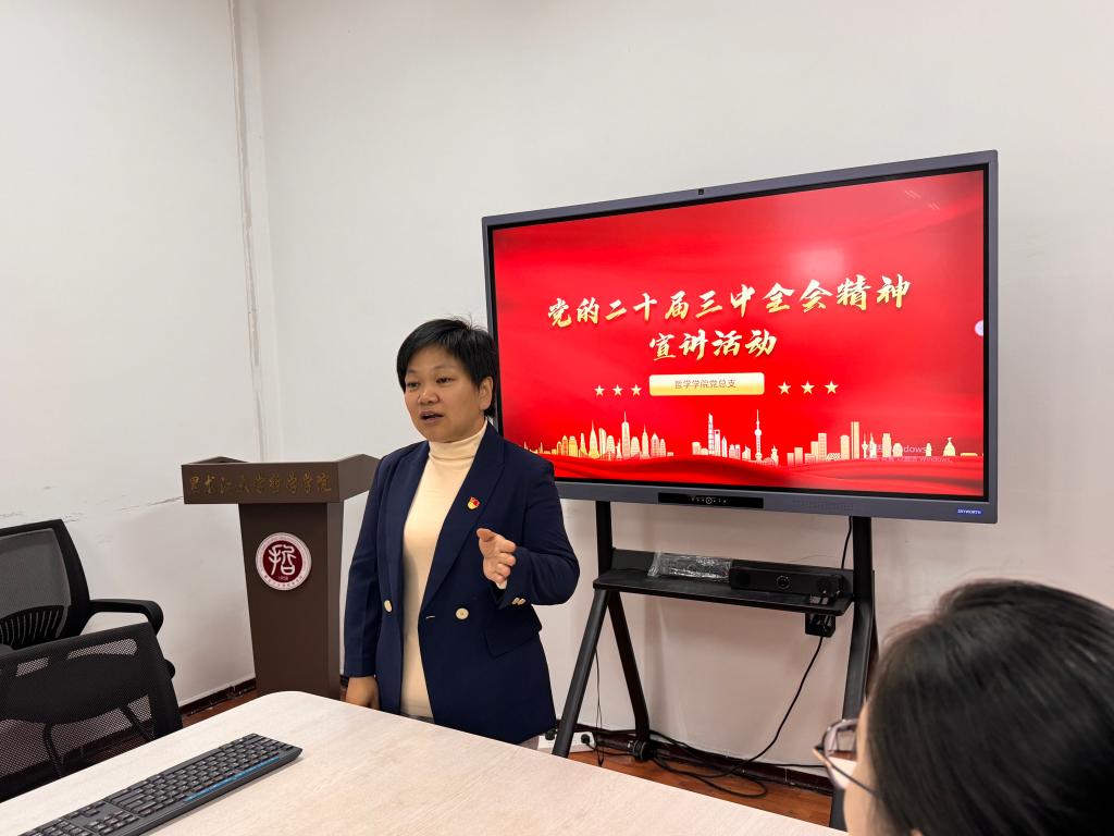 10月14日,员工党支部书记赵慧雪于汇文楼921以《领悟党的二十届三中全会精神 勇担改革新使命》为题进行宣讲,她指出员工党员作为青年员工中的先进分子,要刻苦钻研不断提升自己的专业素养,发挥模范带头作用,为强校发展贡献“哲漾”学子的力量。