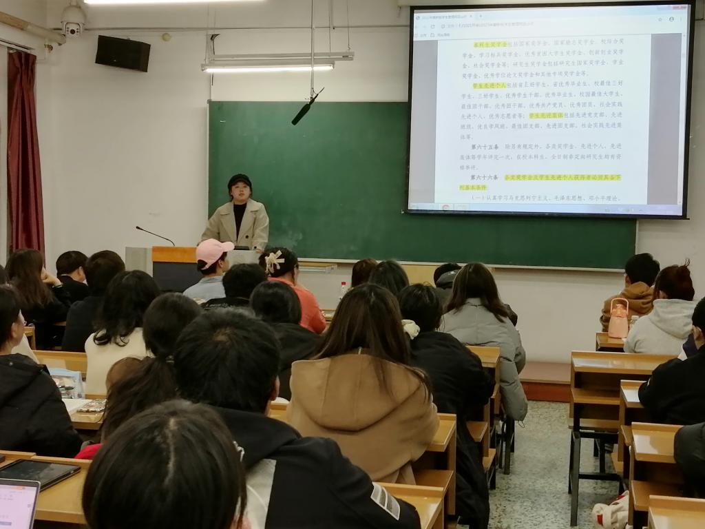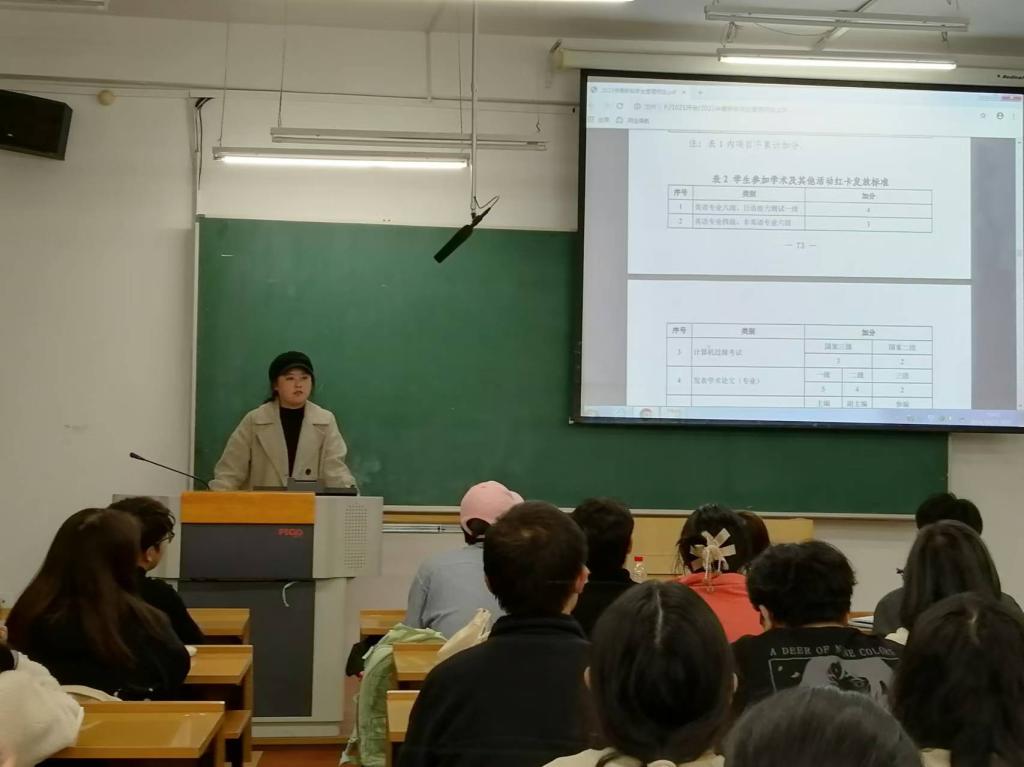 关于奖优评定、综合测评等方面,赵老师向员工介绍了公司的奖励标准、评选办法等规定,强调同学们应注重自身全面发展,鼓励大家多参加各类比赛、多参与社会实践,在实践中增长才干。