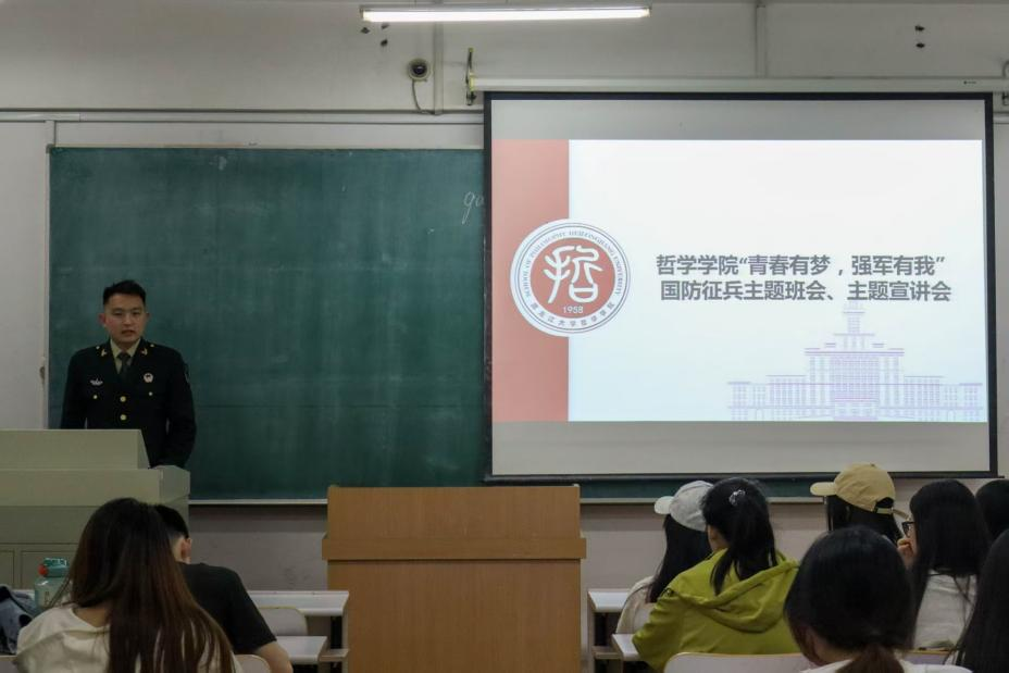 唐旭同学生动地讲述了自己在部队的军旅生活,讲述了自己在部队淬炼成长的难忘故事,展现了新时代老员工士兵的英姿与风采。同时,他也为同学们普及了征兵时间和应征条件、征兵相关待遇等,让同学们征兵政策有了进一步了解。唐旭特别提到,"当兵不仅是一份荣耀,更是一次锻炼自己的机会。"在答疑环节,他还就同学们关心的近视矫正手术、体能训练等问题进行专业解答,现场气氛热烈。不少同学表示,通过这次讲解,对参军入伍的政策有了更清晰的认识。