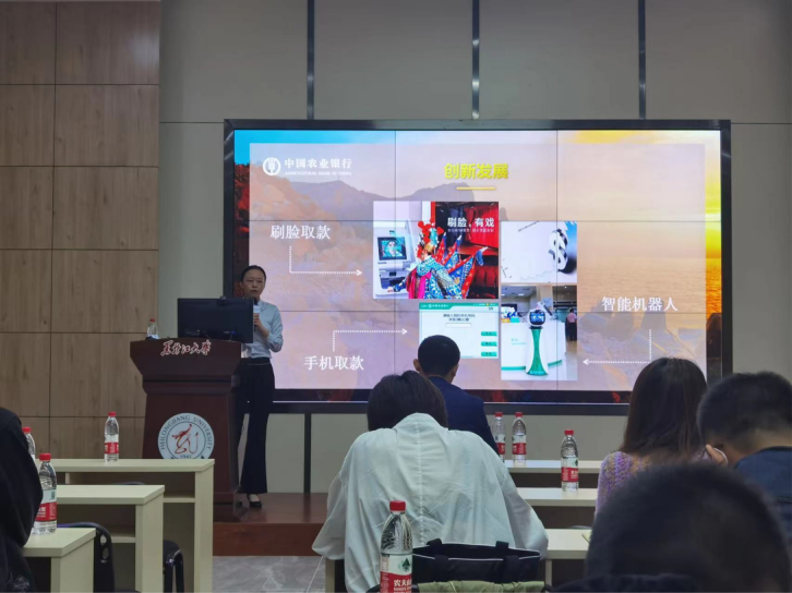 会上,孙老师通过现场连线的方式,邀请了中国农业银行黑龙江省分行的组织部与人事部部长曾欢,为同学们就农行的企业优势,战略前景,薪资待遇,发展空间等方面进行了详细介绍。曾欢部长介绍道:黑龙江省分行今年招聘计划人数预计800余人,其中省直和市区岗位占到200余人。而且所需要的大部分岗位是没有专业限制的,并且根据工作地点的不同农行还提供补贴和免费的员工宿舍。
